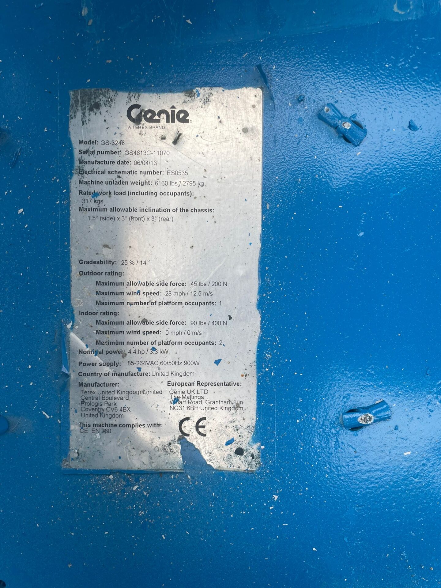 Piattaforma aerea GENIE GS-3246 usata, anno 2013, raggiunge 10mt al calpestio / 12mt di lavoro.