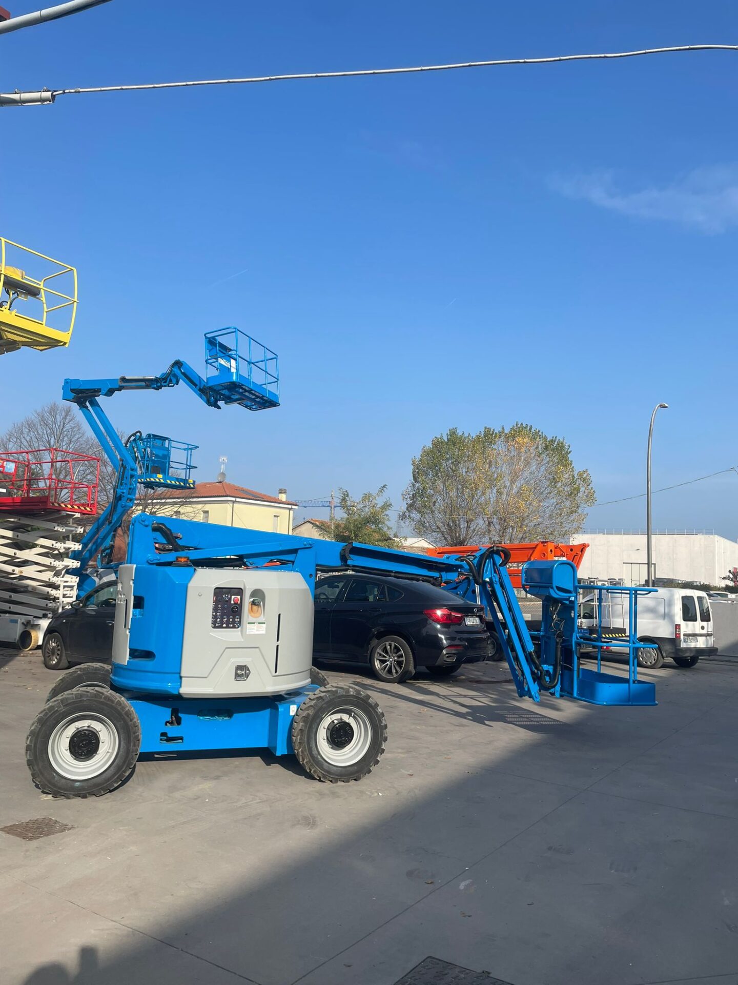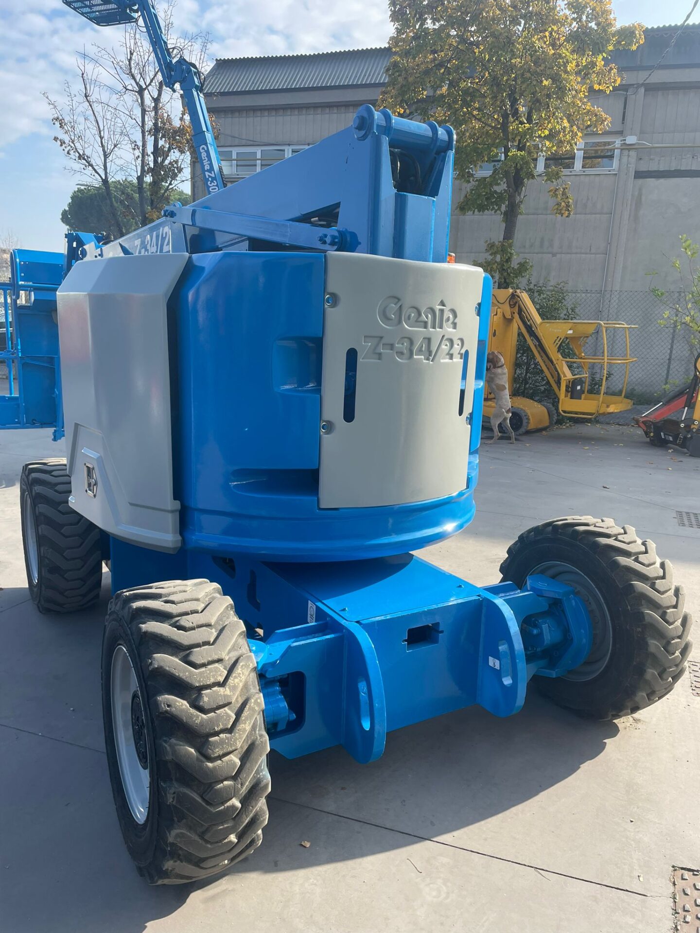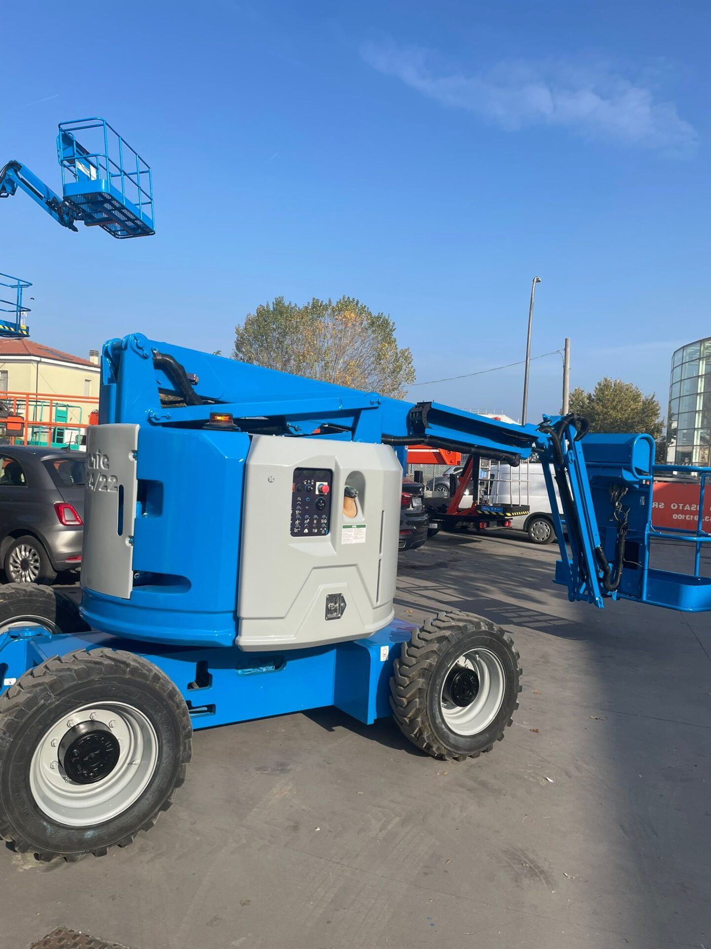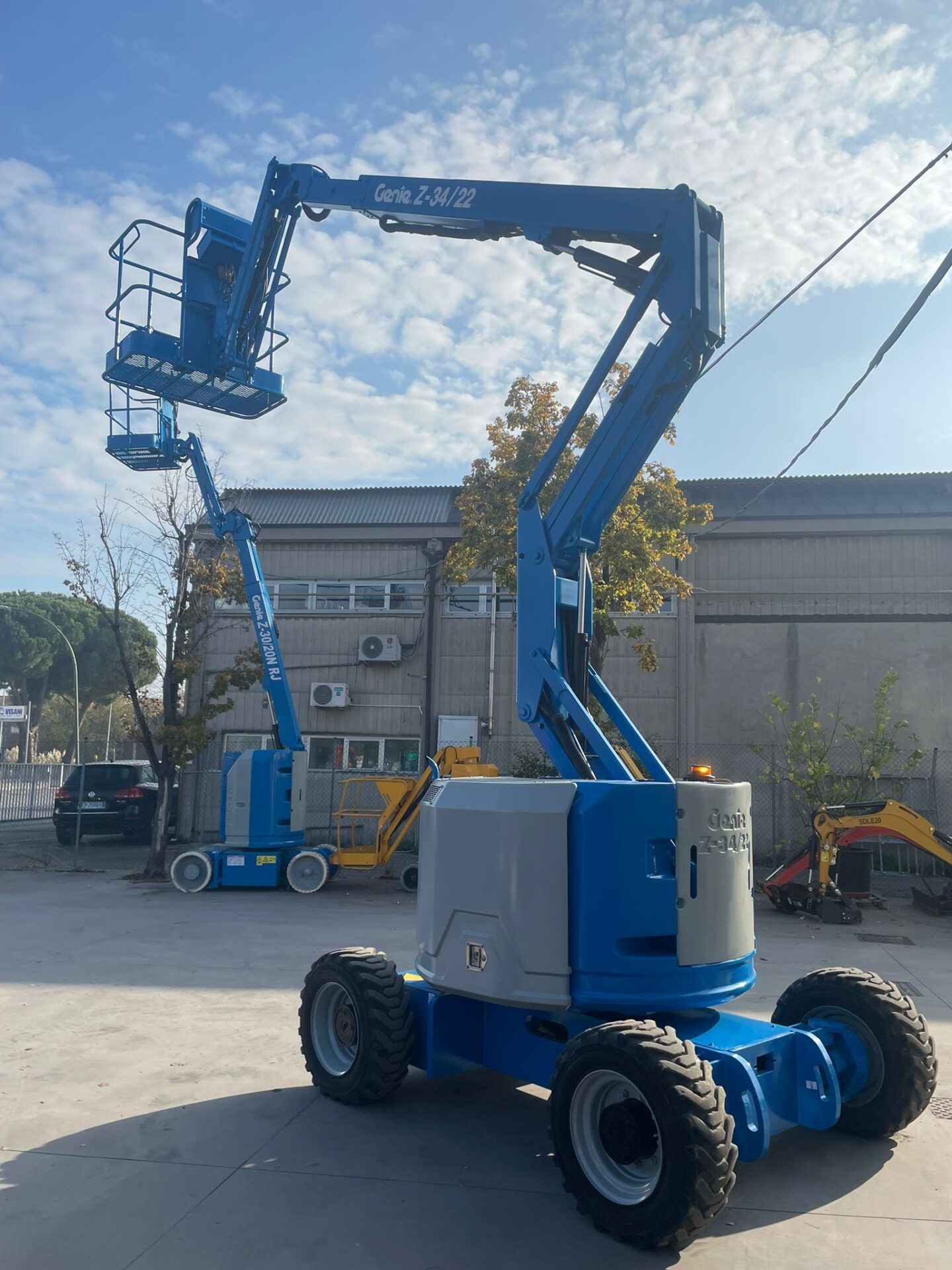 Piattaforma aerea usata semovente a braccio GENIE Z34/22 IC, anno 2015, raggiunge 12,54mt di lavoro con uno sbraccio massimo di 6,78mt ed è larga solamente 1,42mt; ideale per spostarsi in spazi ridotti. Gomme a trazione 4×4, ideale per ogni terreno, alimentazione diesel, motore Kubota.