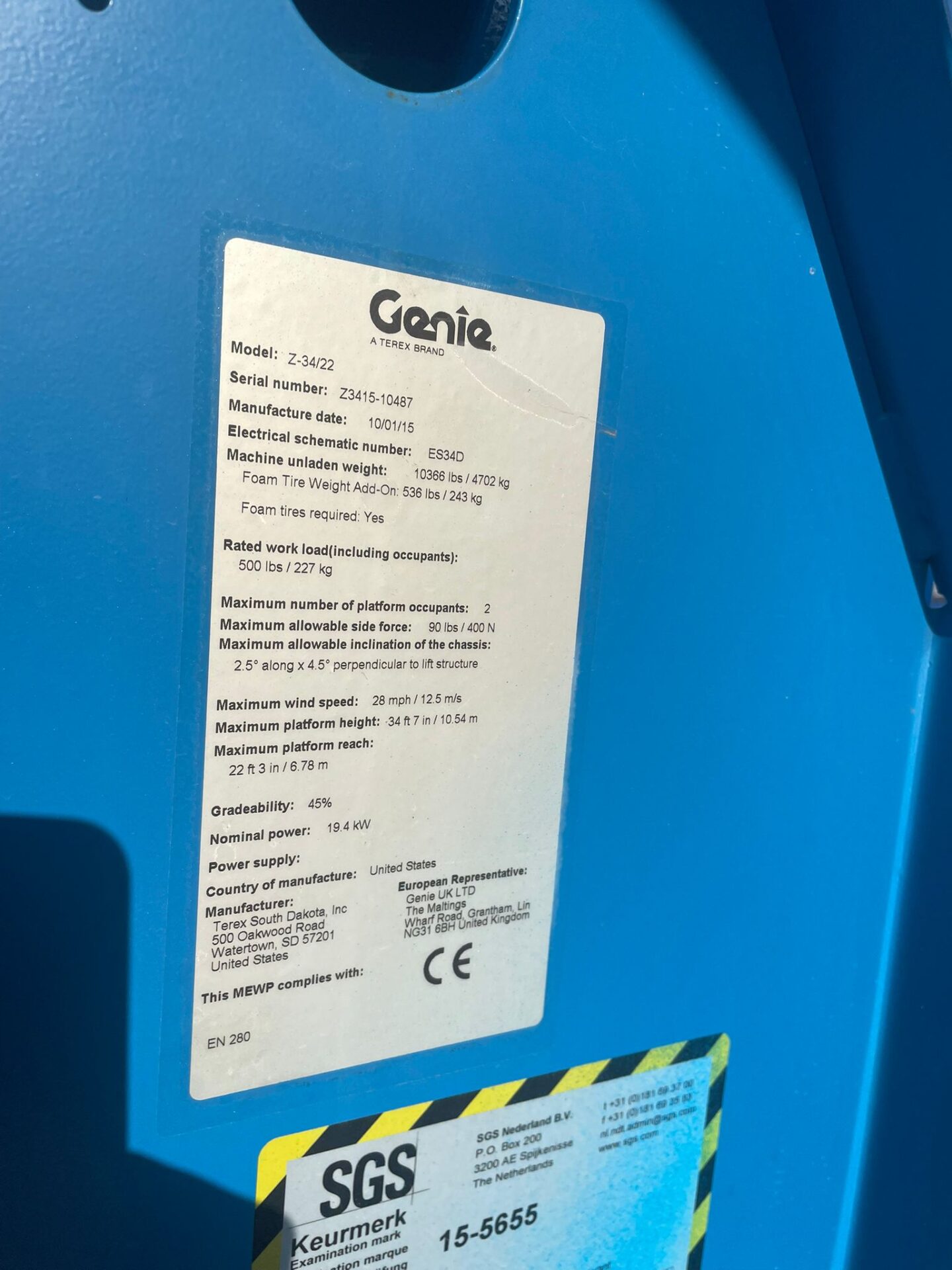 PIATTAFORMA AEREA GENIE Z34/22 DIESEL ANNO 2015