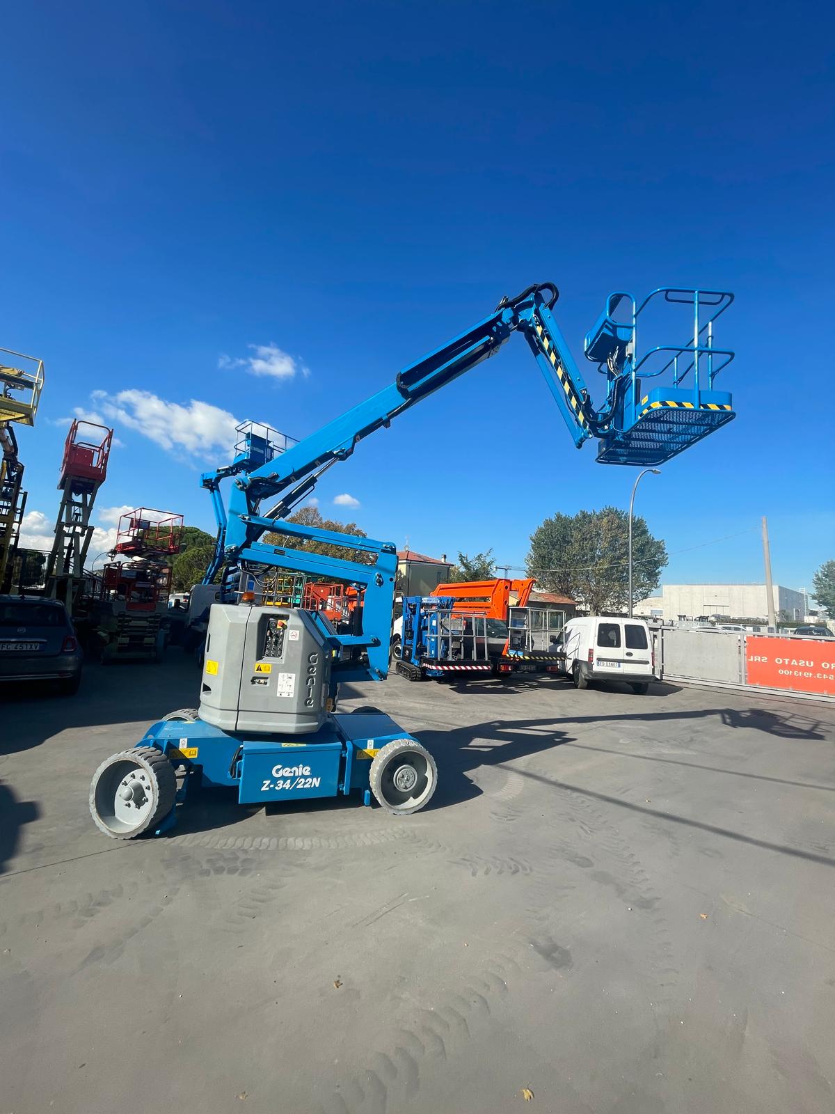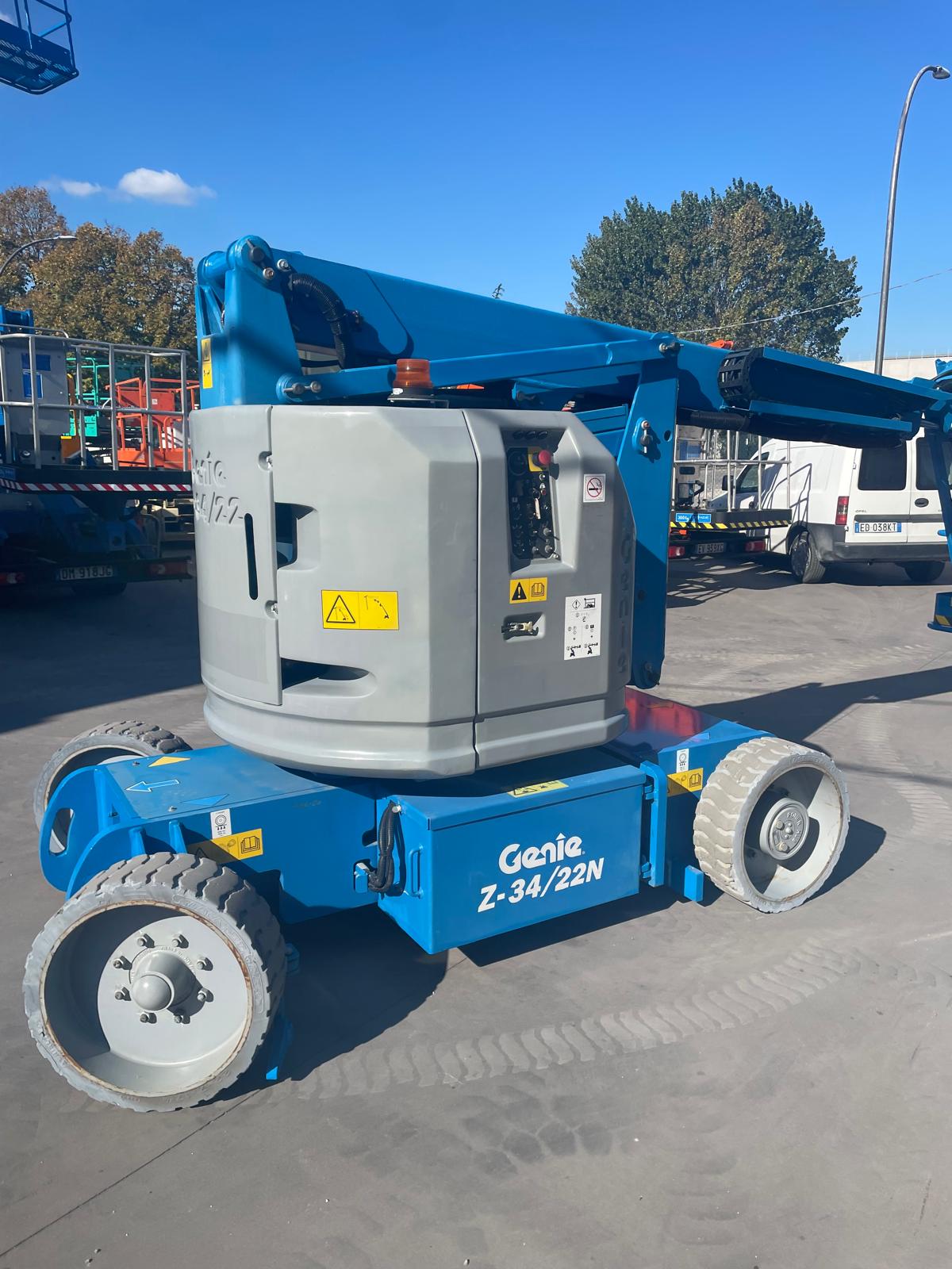 Piattaforma aerea usata semovente a braccio GENIE Z34/22N, anno 2016, raggiunge 13,5mt di lavoro con uno sbraccio massimo di 6,78mt ed è larga solamente 1,42mt; ideale per spostarsi in spazi ridotti.
