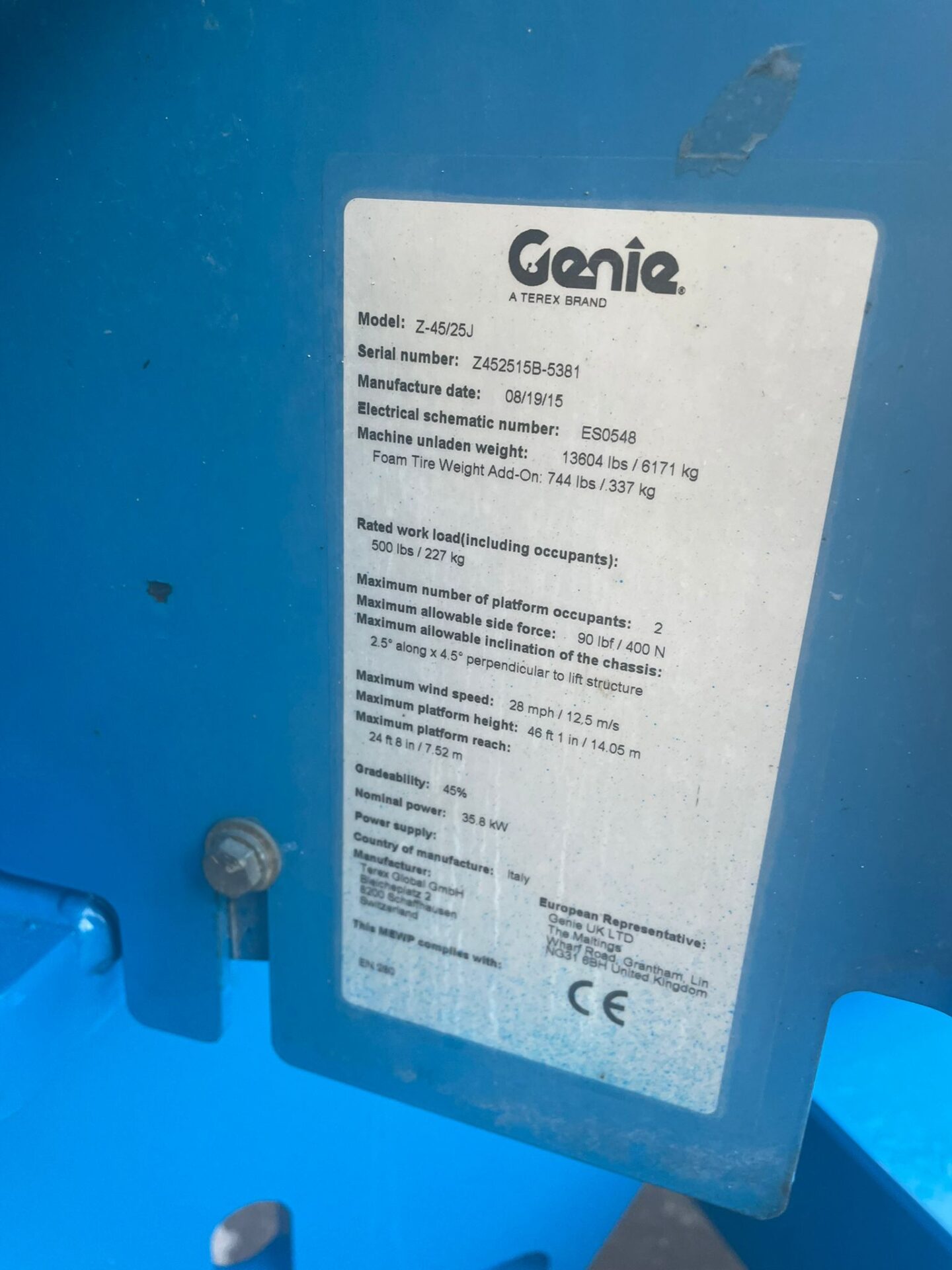 Piattaforma aerea semovente a braccio articolato GENIE Z45/25, diesel, trazione 4×4.
