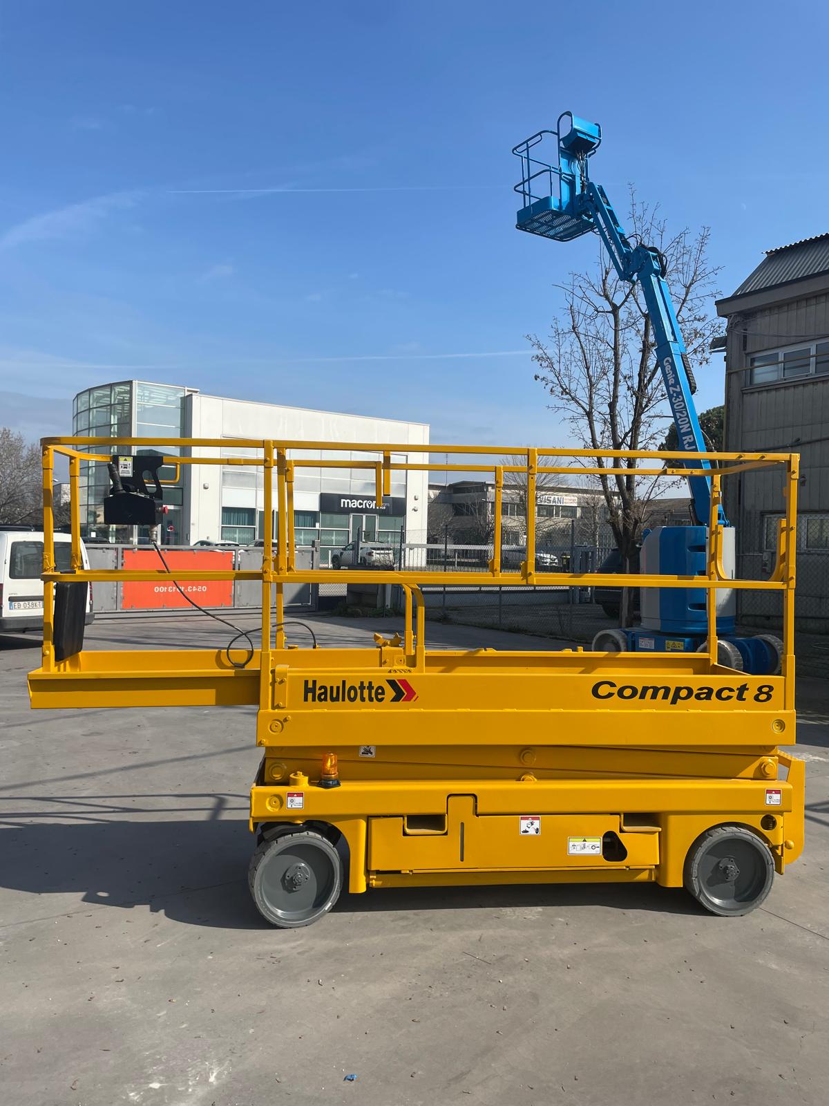 Pronta all’uso: piattaforma aerea HAULOTTE COMPACT 8 usata, verticale a pantografo elettrica con ruote bianche antitraccia. Anno 2015, raggiunge 6mt al calpestio / 8 mt di lavoro.
