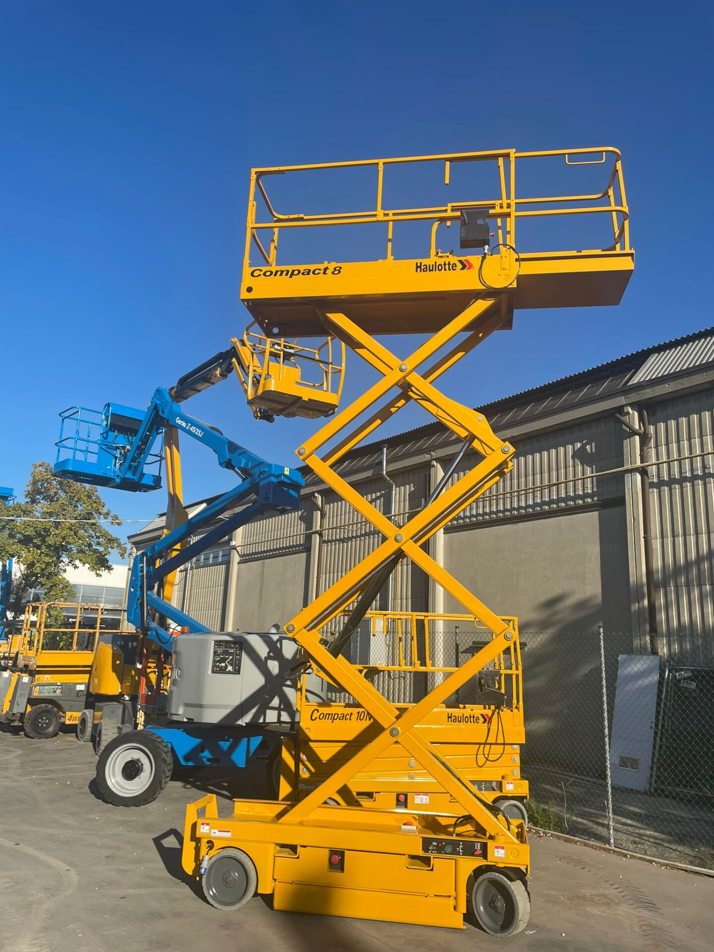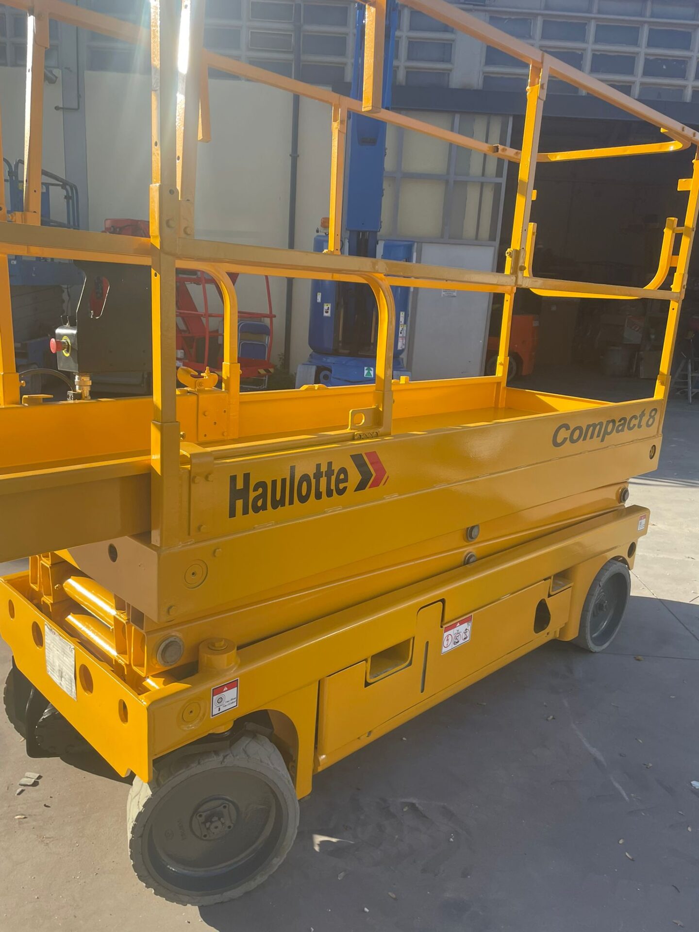 Bellissima piattaforma aerea HAULOTTE COMPACT 8 usata, verticale a pantografo elettrica con ruote bianche antitraccia. Anno 2015, raggiunge 6mt al calpestio / 8 mt di lavoro.
