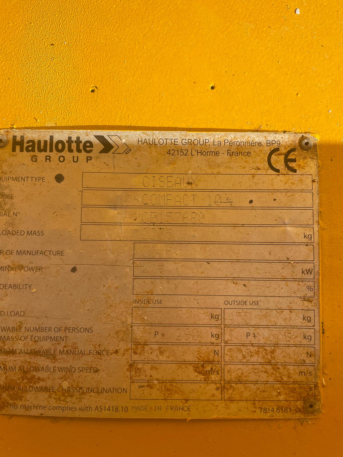 Piattaforma aerea usata verticale a pantografo elettrica Haulotte Compact10, raggiunge 10mt di lavoro, anno 2015, poche ore 664.
