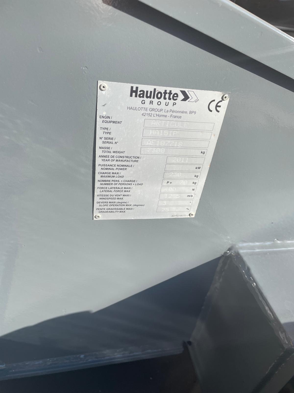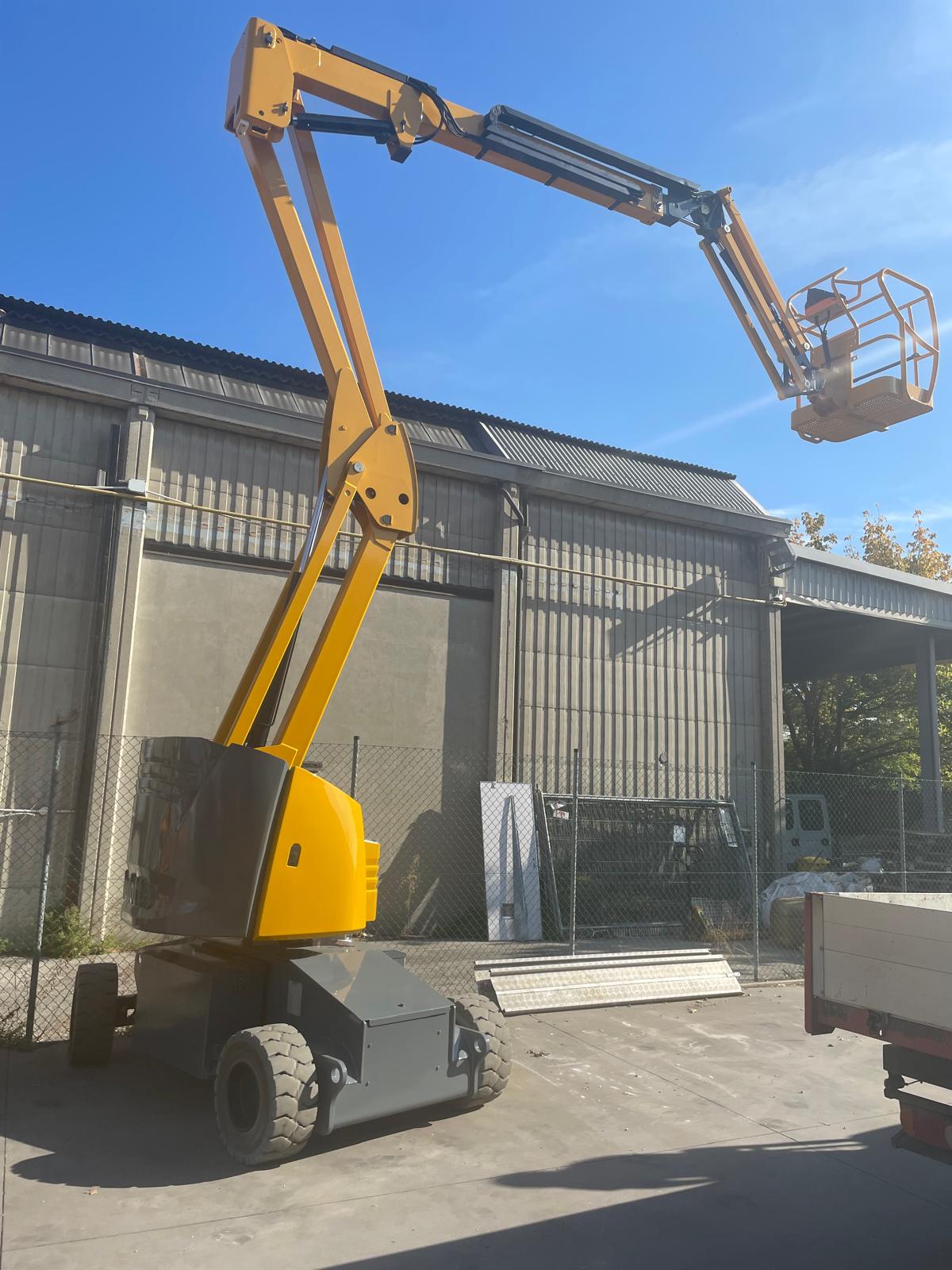 Piattaforma aerea usata semovente a braccio HAULOTTE HA15IP, anno 2011, raggiunge 15mt di lavoro con uno sbraccio massimo di 8,5mt ed è larga solamente 1,50mt; ideale per spostarsi in spazi ridotti.