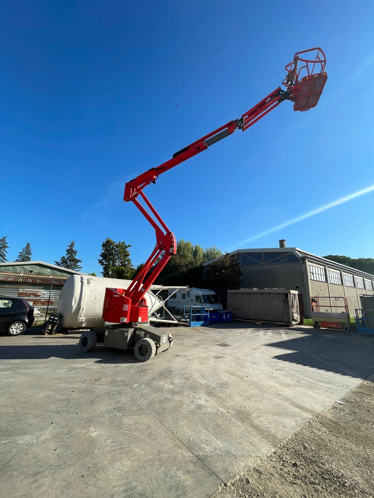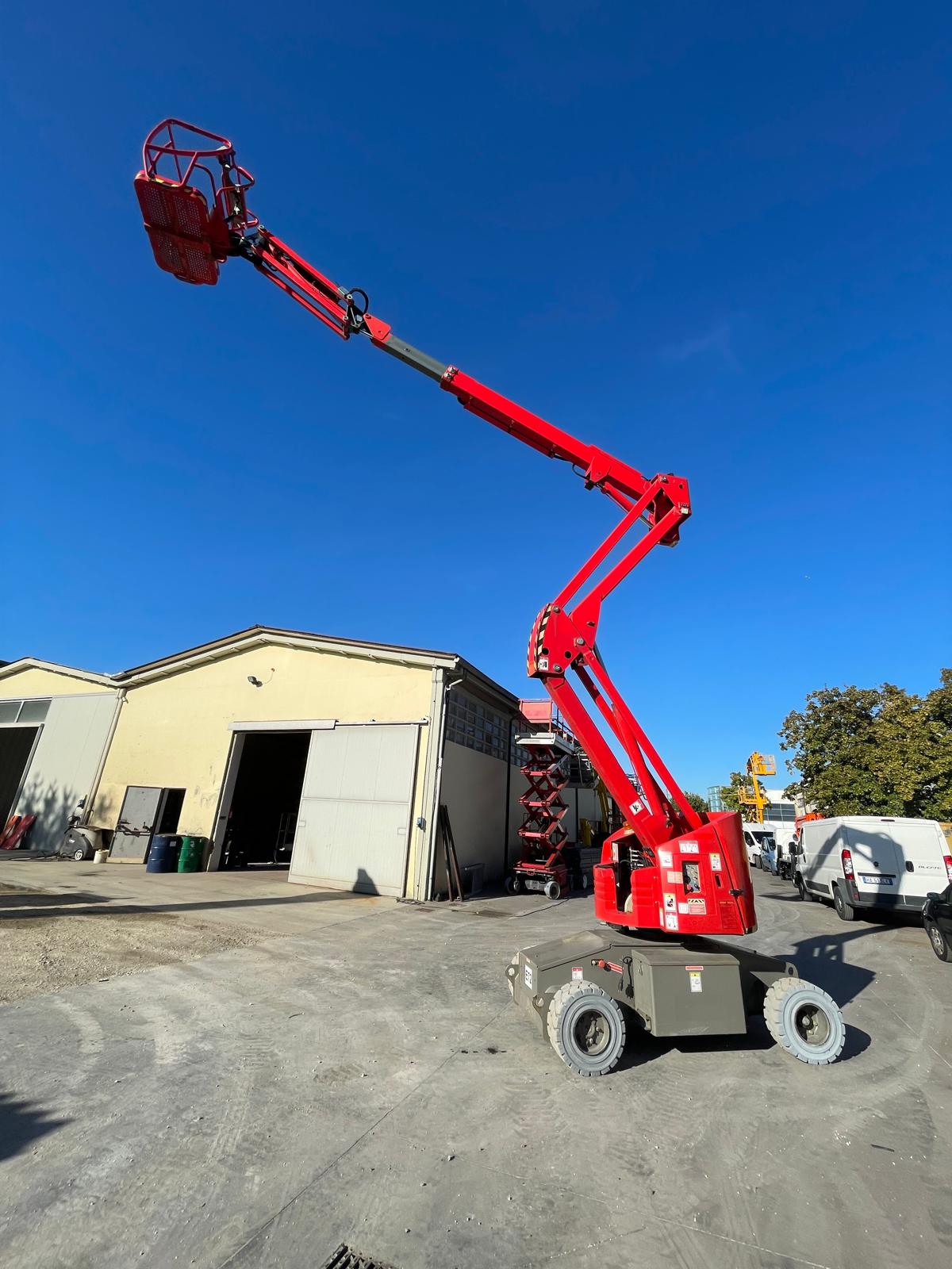 Piattaforma aerea usata semovente a braccio HAULOTTE HA15IP, anno 2012, raggiunge 15mt di lavoro con uno sbraccio massimo di 8,5mt ed è larga solamente 1,50mt; ideale per spostarsi in spazi ridotti.