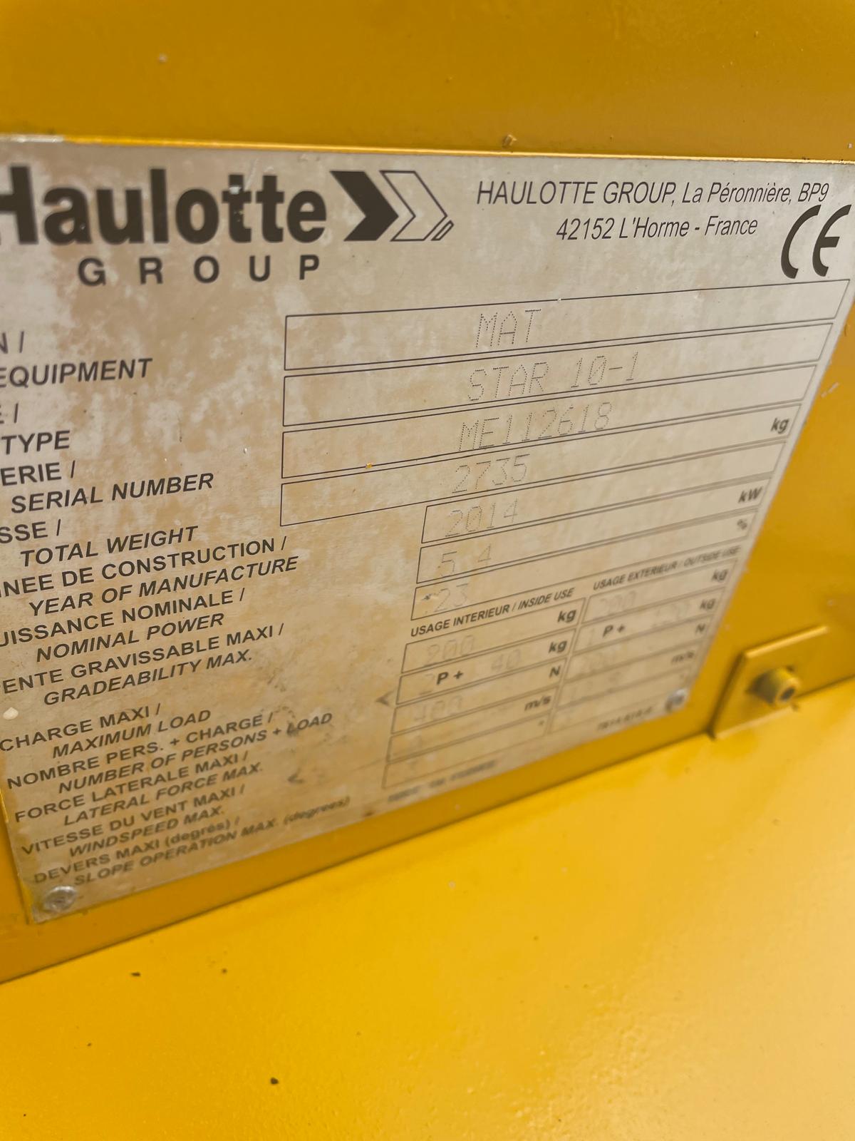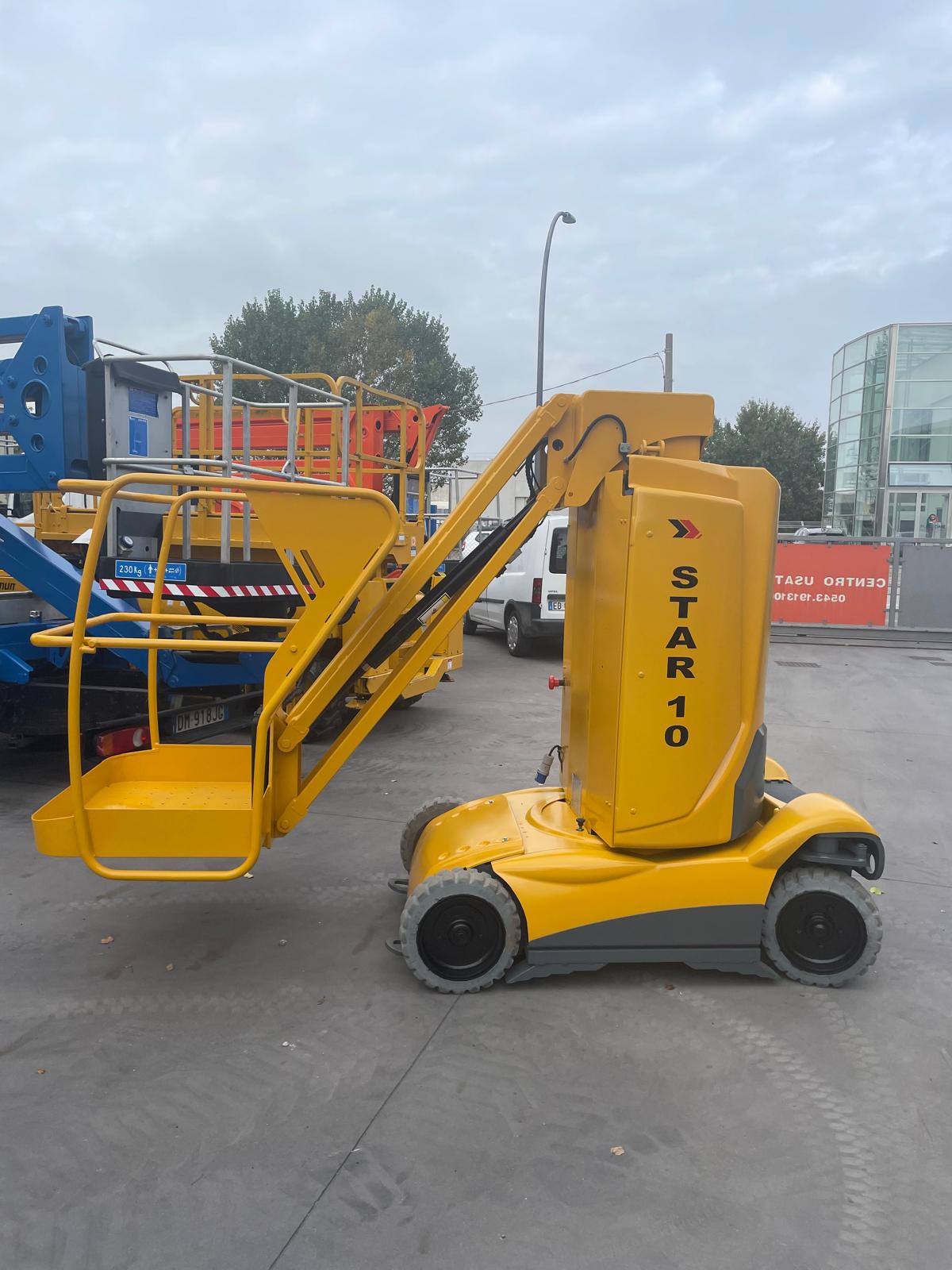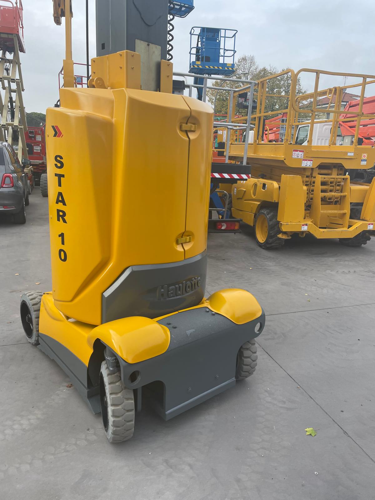 Piattaforma aerea usata elettrica a colonna HAULOTTE STAR 10, anno 2014, raggiunge 10mt di lavoro con uno sbraccio massimo di 3mt, torretta girevole e con dimensioni compatte.