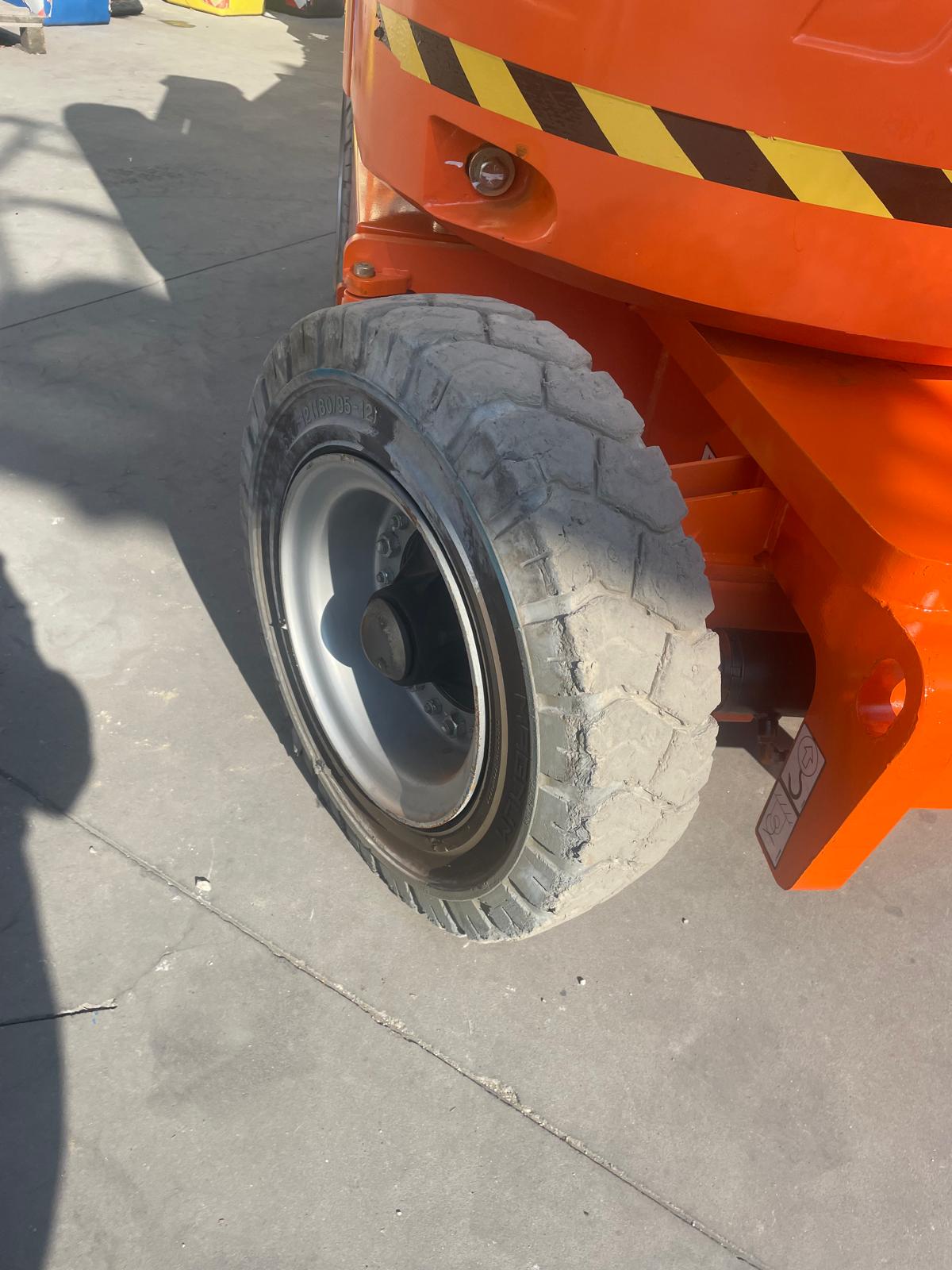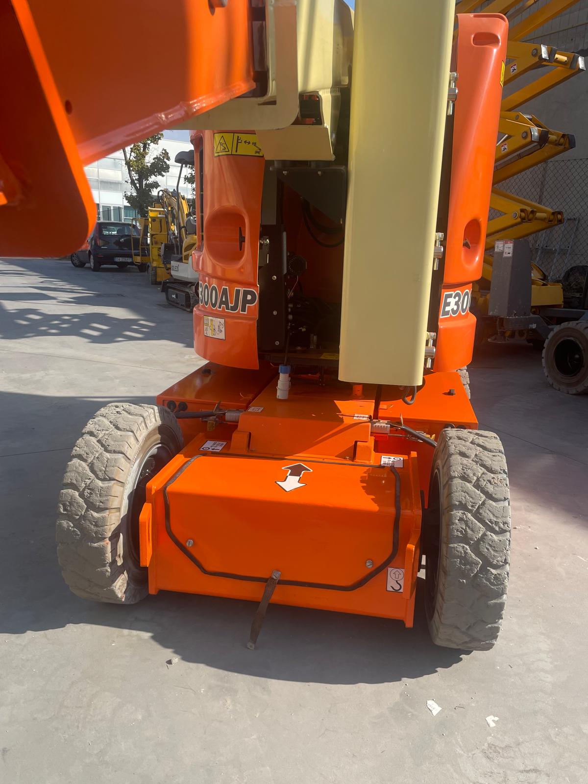 Piattaforma aerea usata semovente a braccio JLG E300AJP, anno 2012, raggiunge 11mt di lavoro con uno sbraccio massimo di 6mt ed è larga solamente 1,22mt; ideale per spostarsi in spazi ridotti.