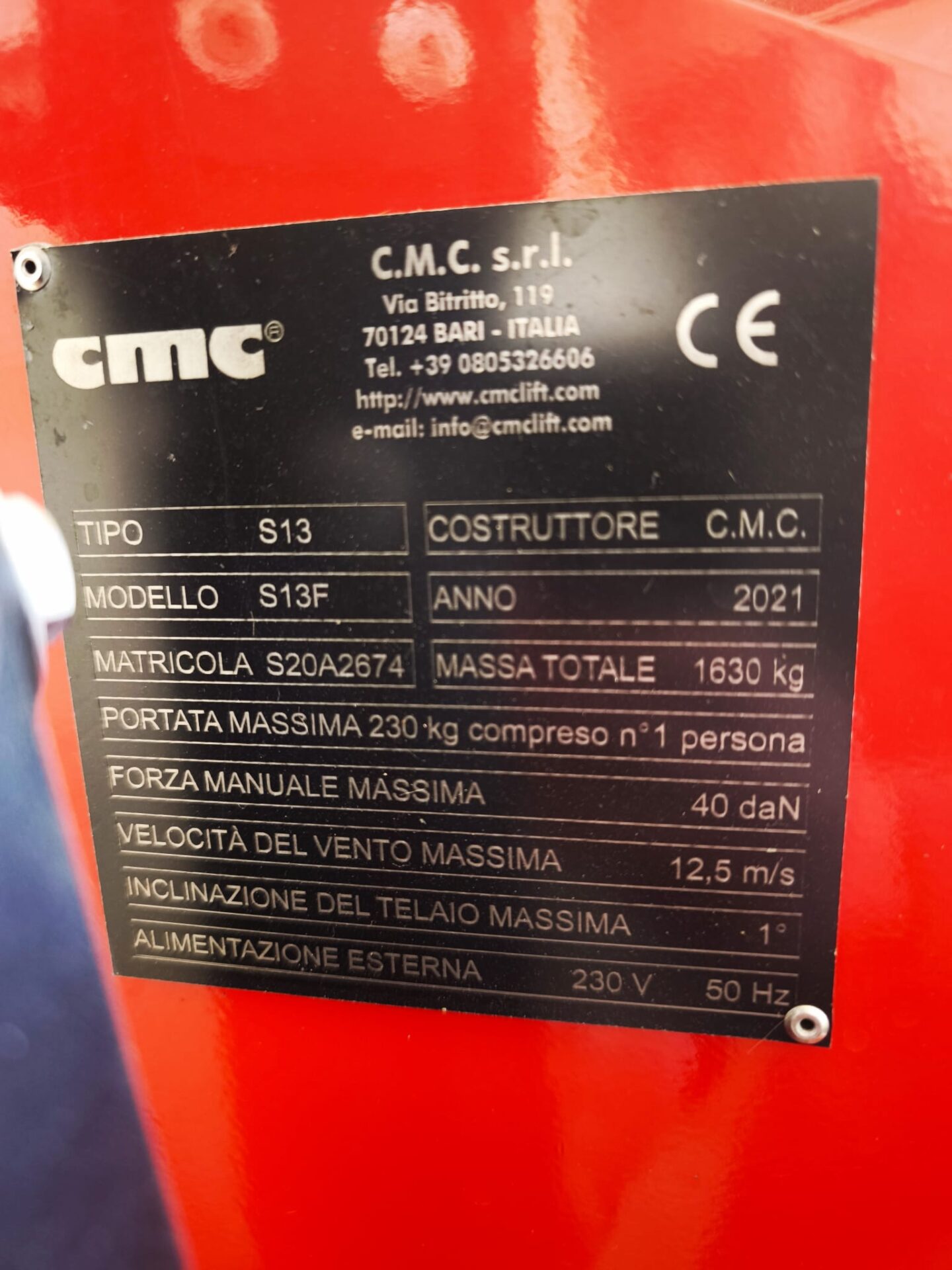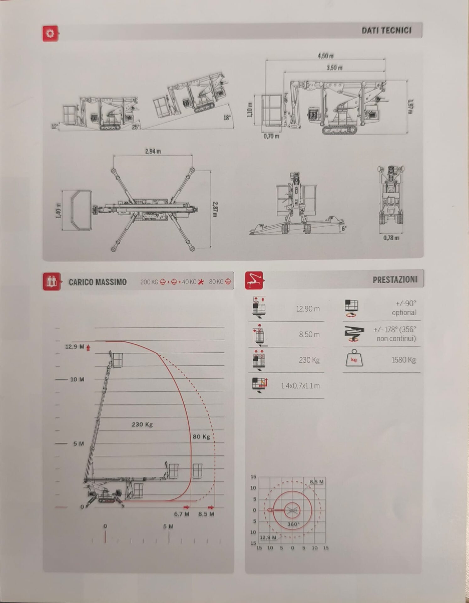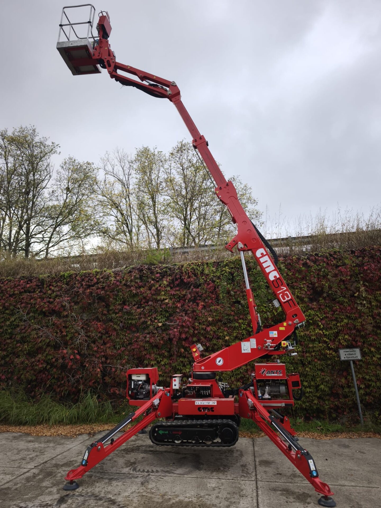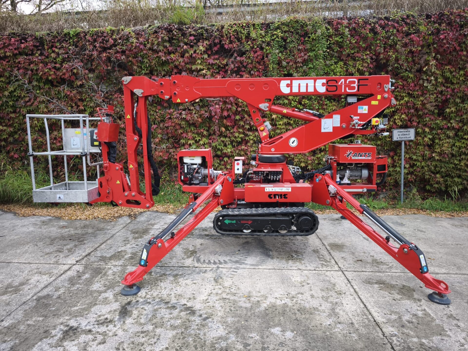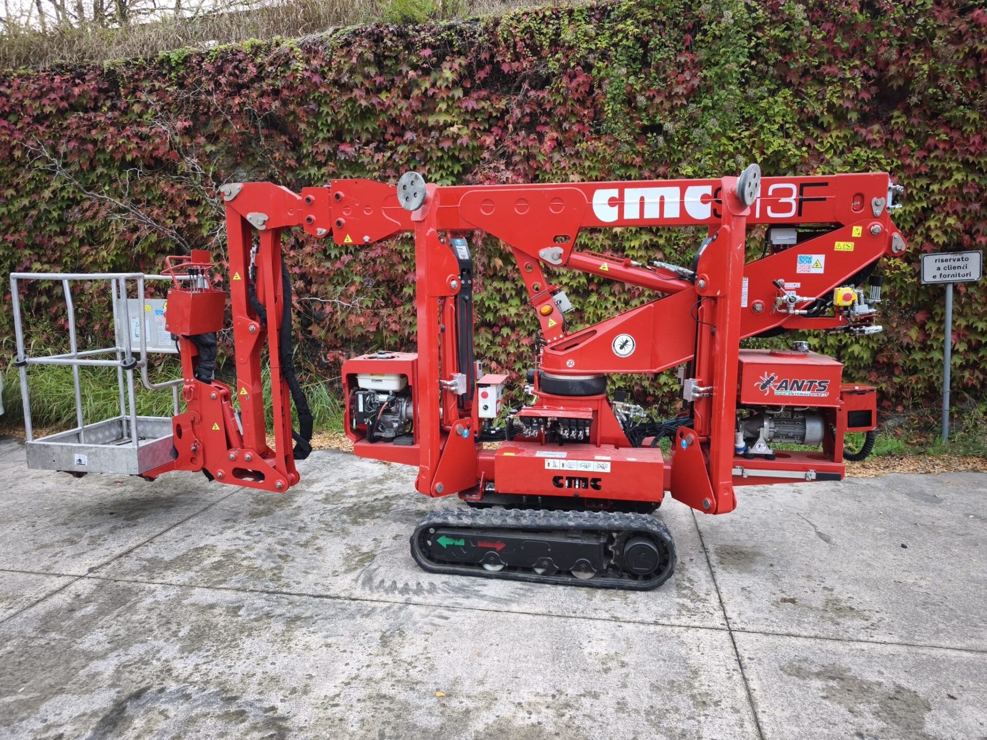 Piattaforma aerea cingolata ragno CMC S13F con stabilizzatori, altezza di lavoro 12,90mt.
