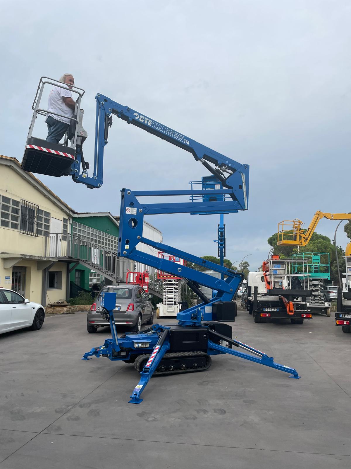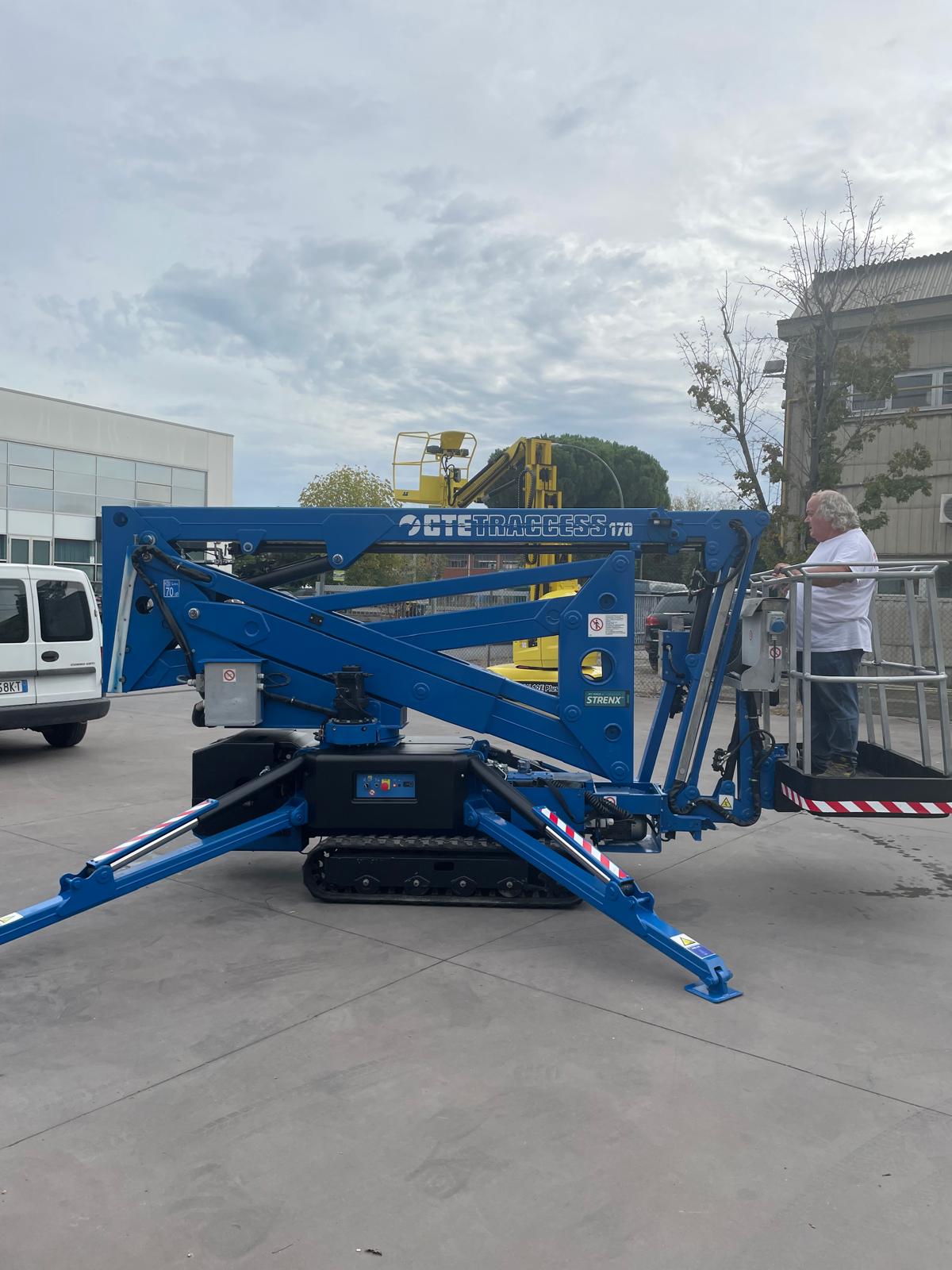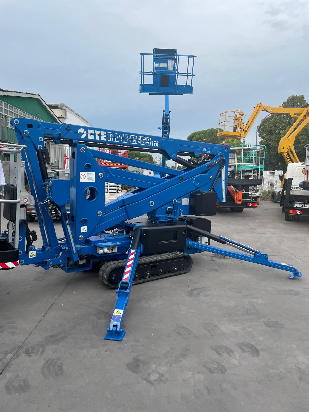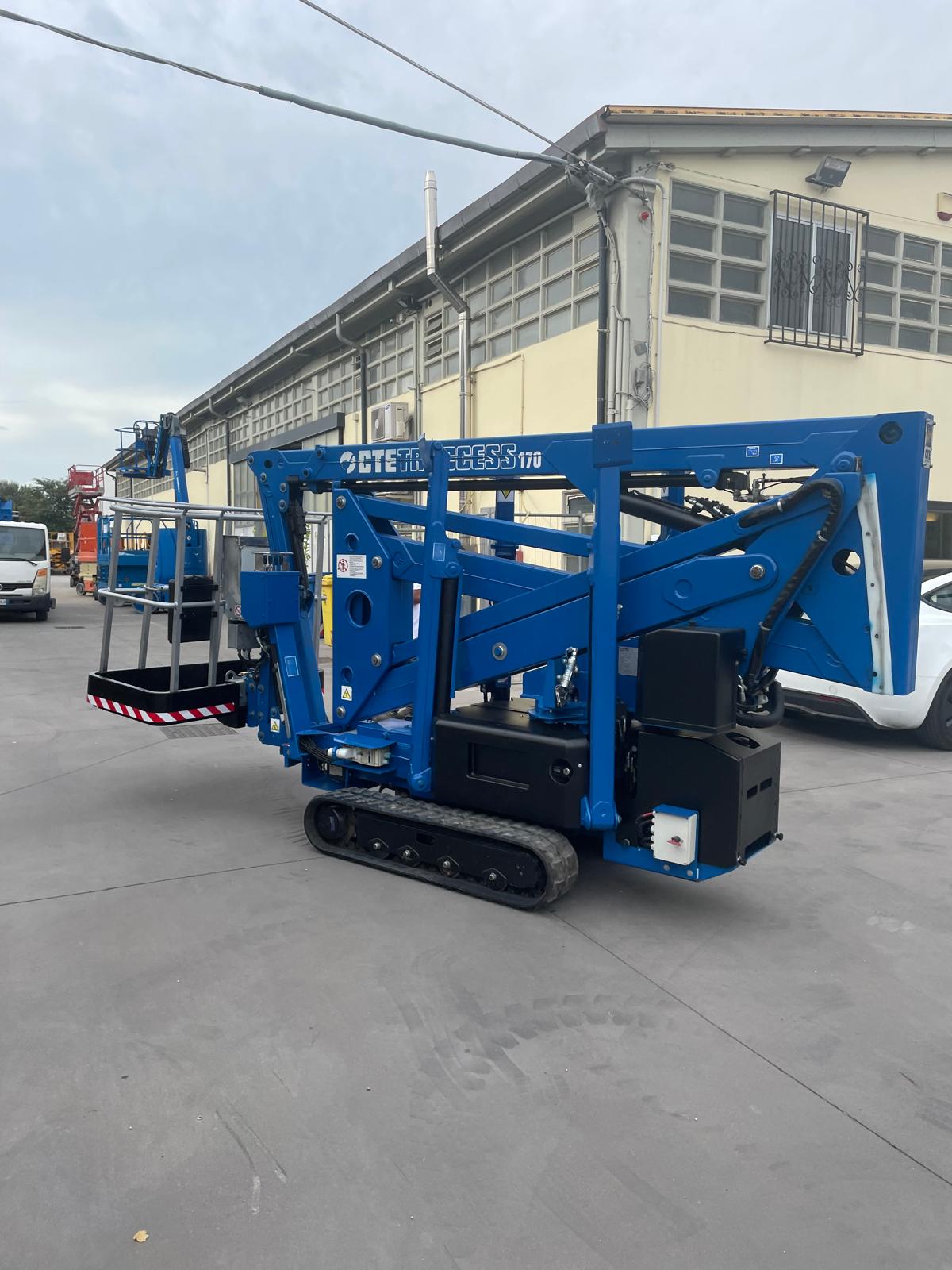 Piattaforma aerea cingolata ragno CTE TRACCESS 170 con stabilizzatori, altezza al calpestio 15mt, altezza di lavoro 17mt.