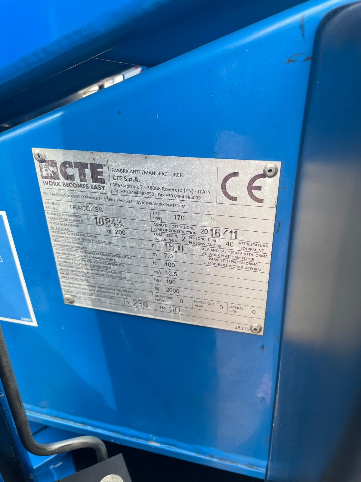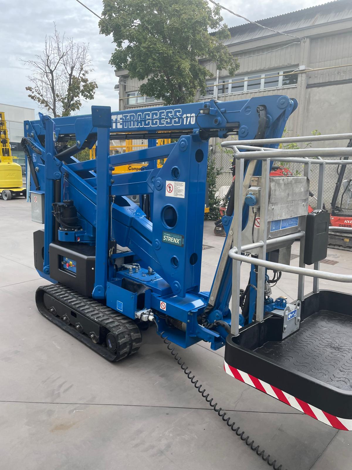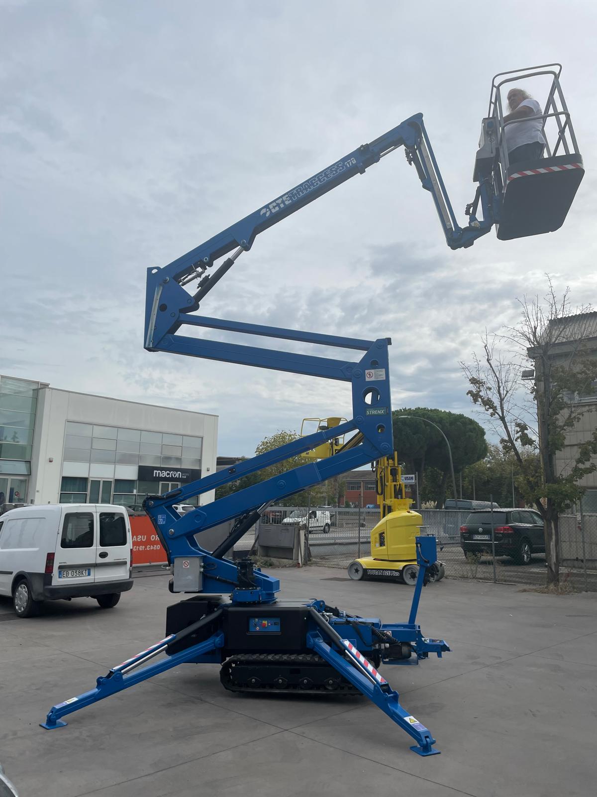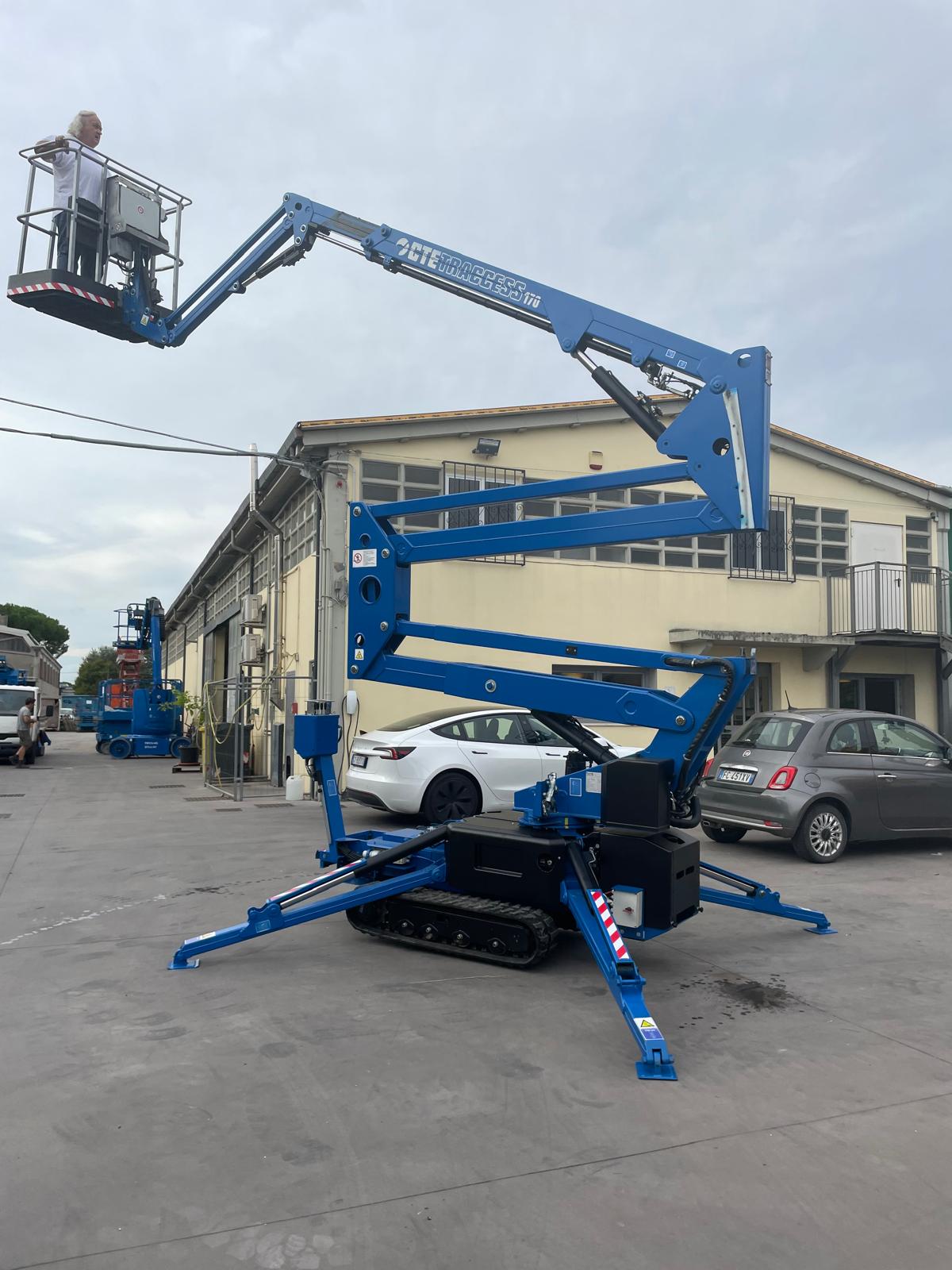 Piattaforma aerea cingolata ragno CTE TRACCESS 170 con stabilizzatori, altezza al calpestio 15mt, altezza di lavoro 17mt.